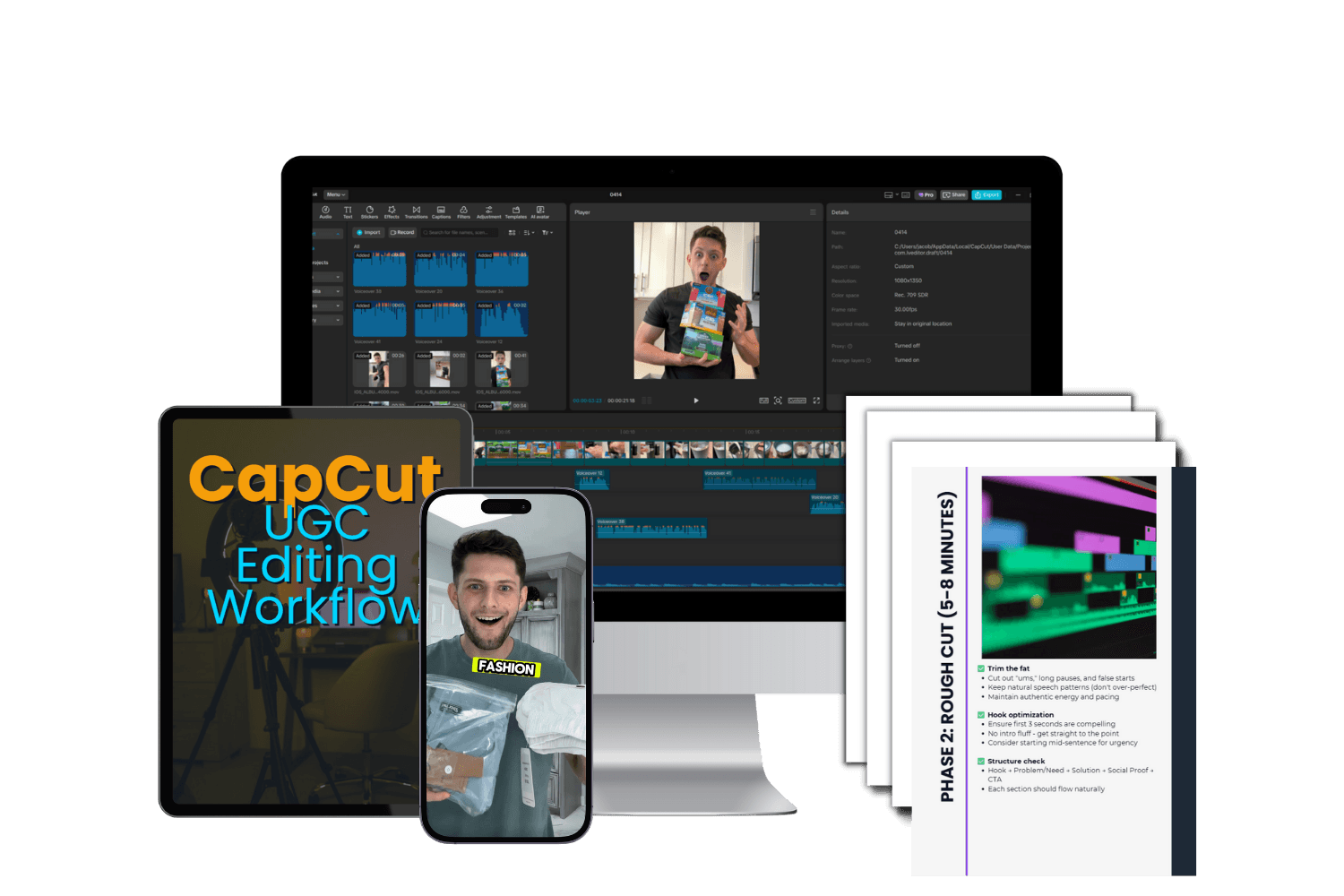 (Bonus) The $0 Tech Stack containing all the free (or dirt-cheap) tools I use to film, edit, and deliver UGC like a pro even if all you have is a smartphone.