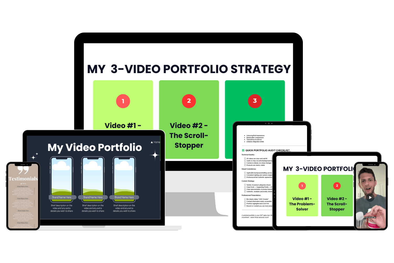 A plug-and-play UGC portfolio that actually converts and doesn't just looks good. (This alone can be the difference between ghosted and booked.)