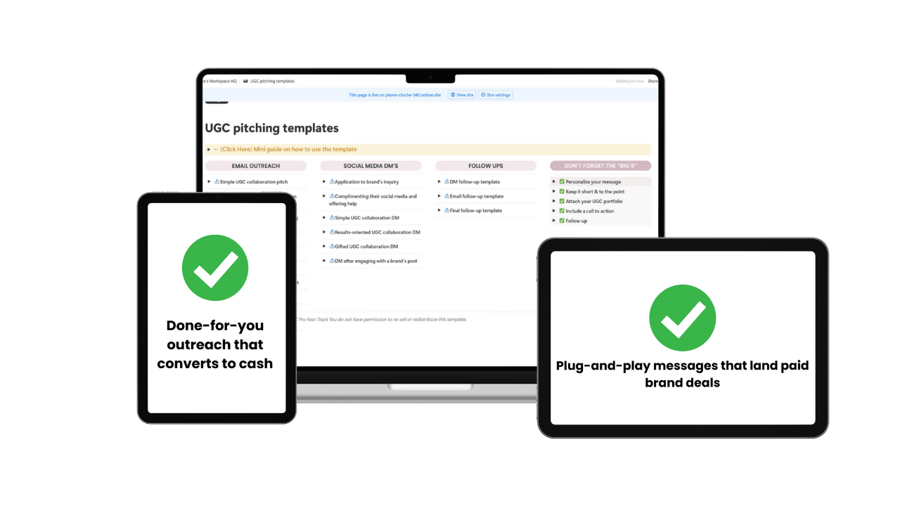 When you join today, you’ll get access to the exact word-for-word messages I’ve used to land paid brand deals so there's no awkward cold outreach, just plug-and-send templates designed to get replies.
